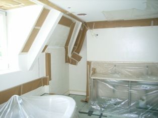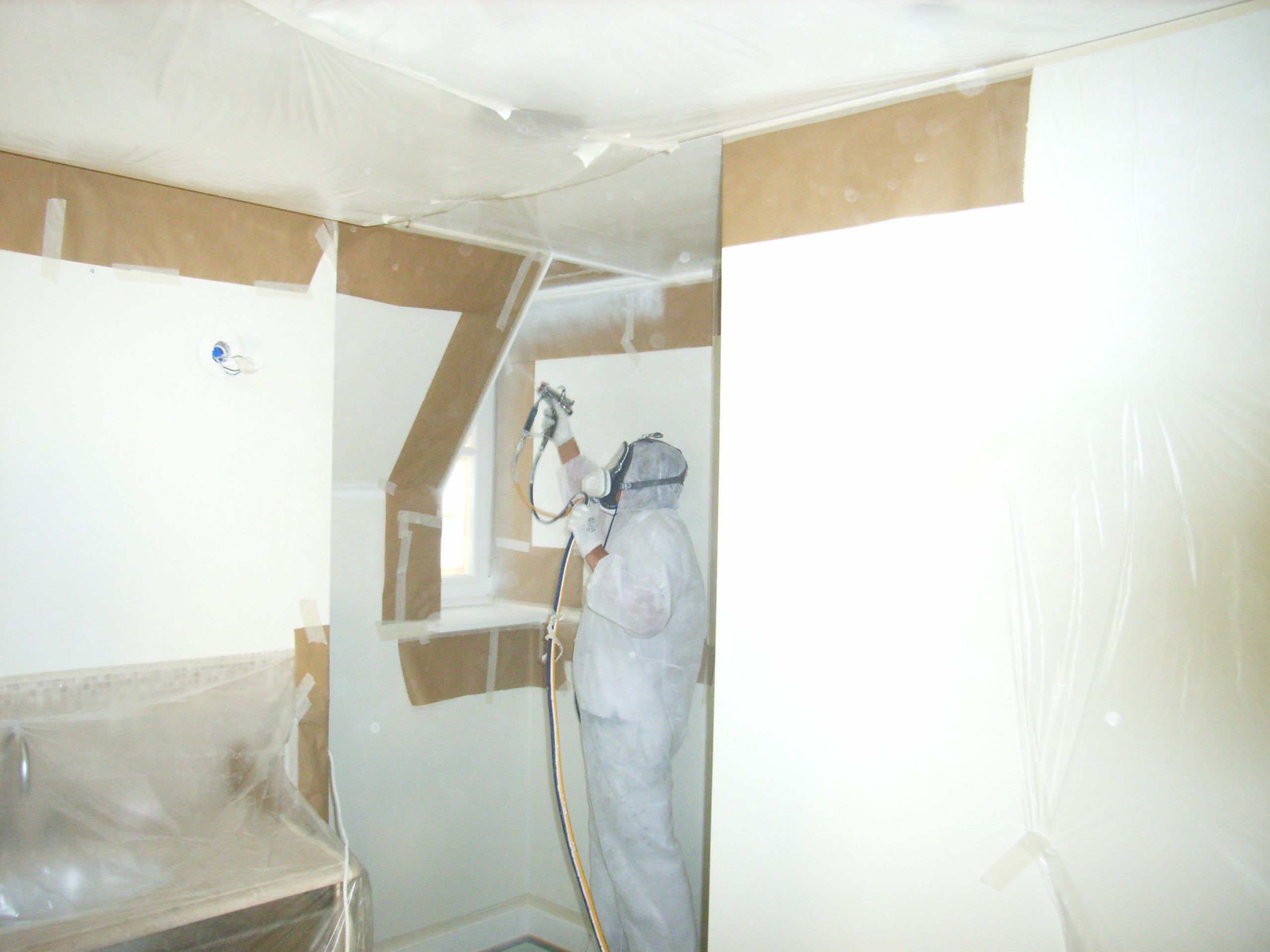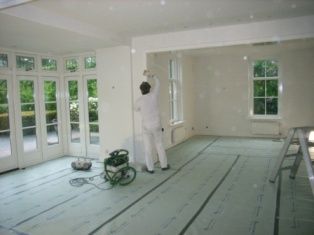 Spuitwerk, Villa in 't Gooi wordt compleet gespoten i.p.v. geschilderd.