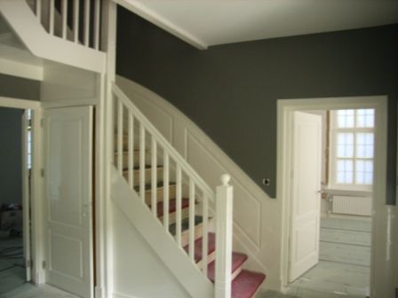Deze prachtige villa hebben wij volledig gespoten van binnen in de allerhoogste kwaliteit hooglans. De buitenzijde met de kwast geschilderd en de vloeren door onze vloeren specialist white-Wash gemaakt.
