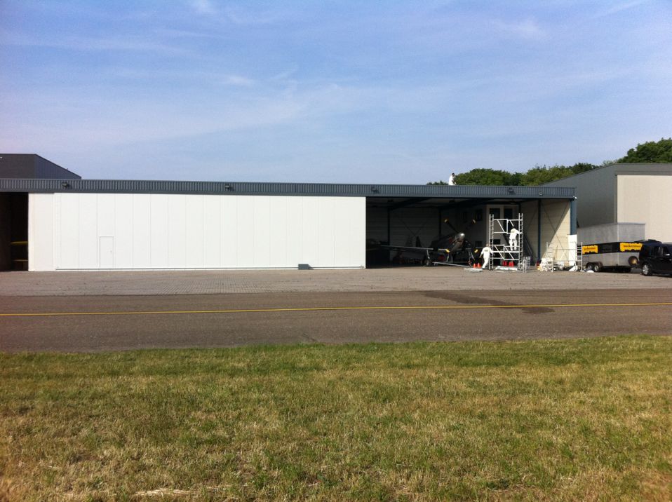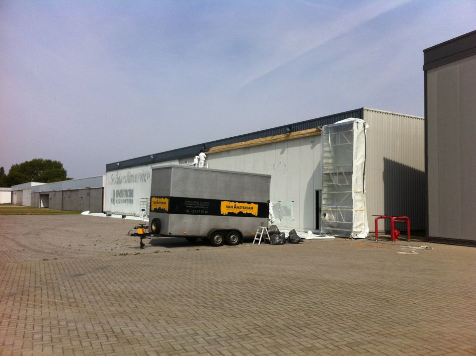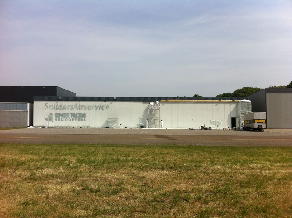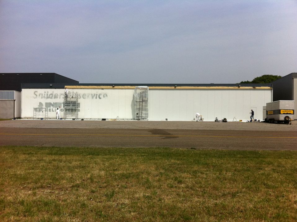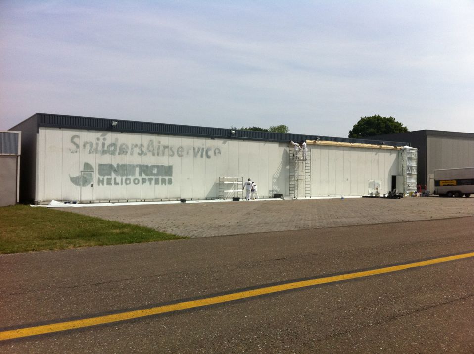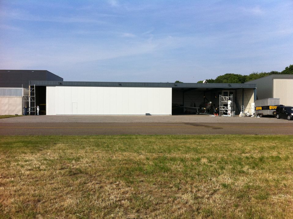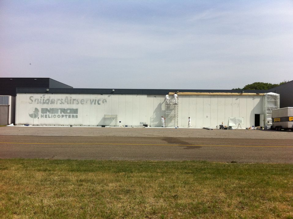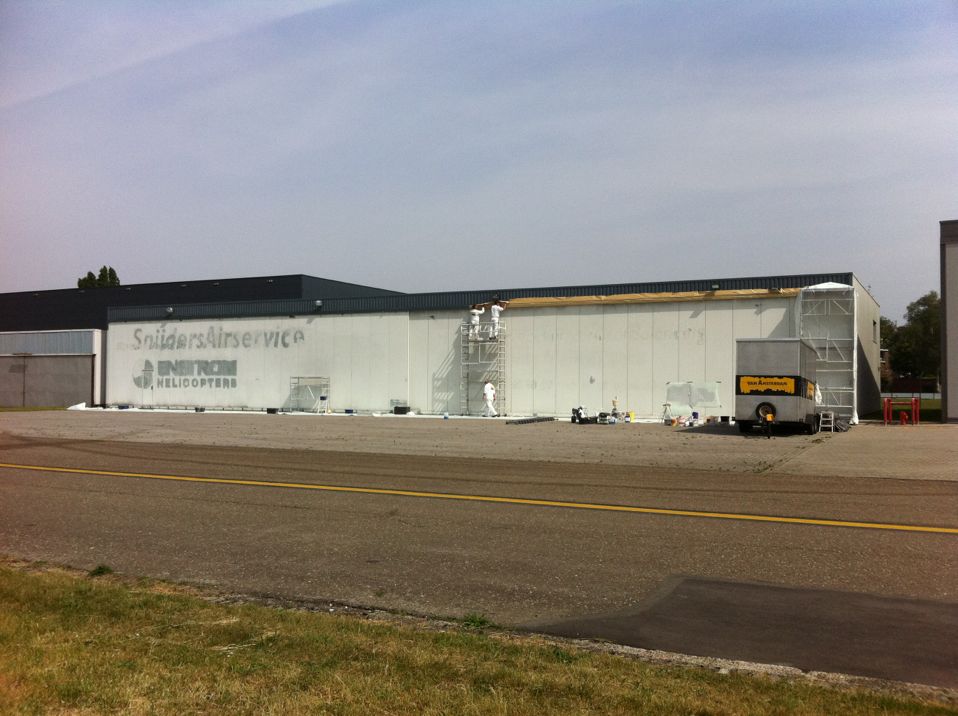 In Belgie werden wij gevraagd door een verzamelaar van historische vliegtuigen om de zojuist aangeschafte prive hangar te spuiten. Grootste probleem wat zich hier kon voordoen was verfnevel op onbetaalbare vliegtuigen.