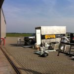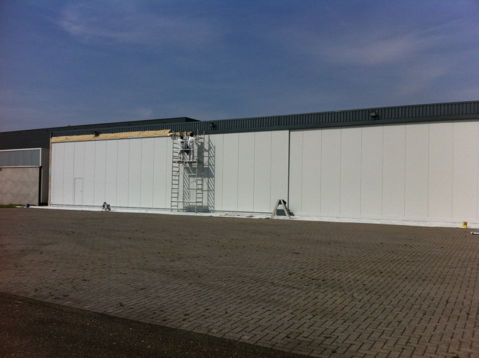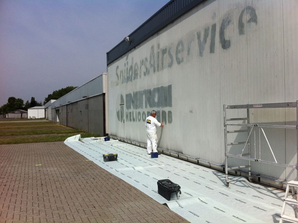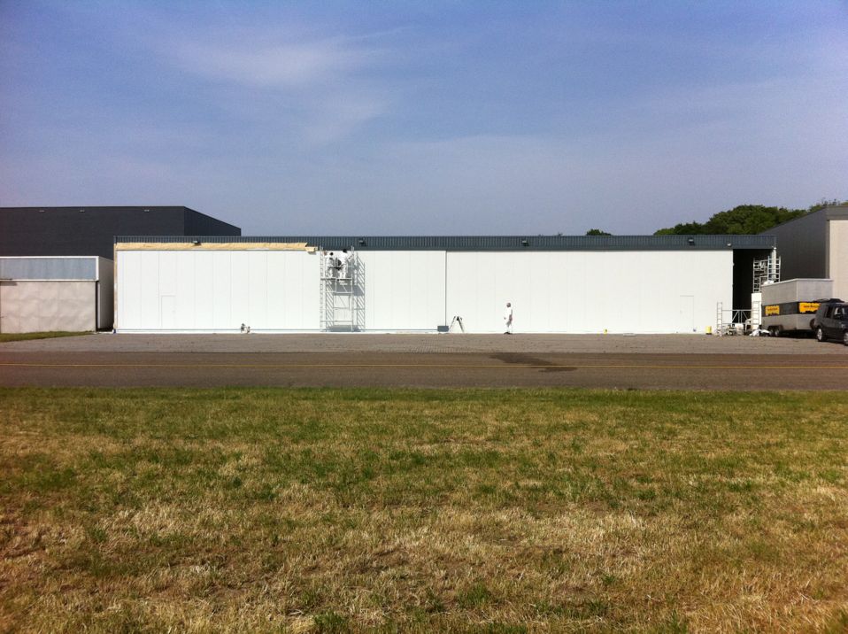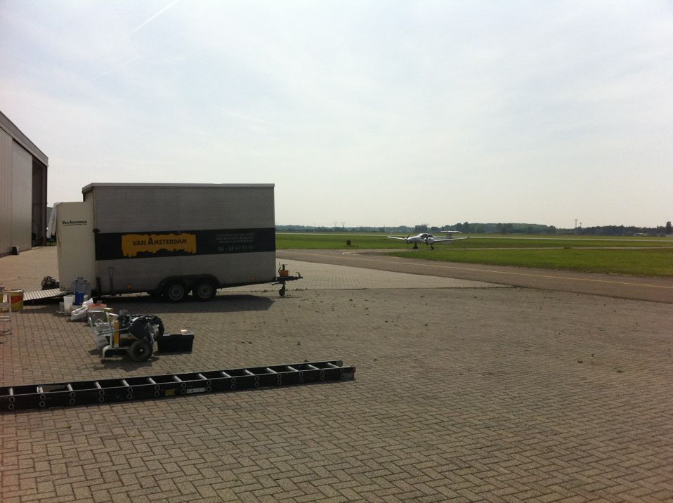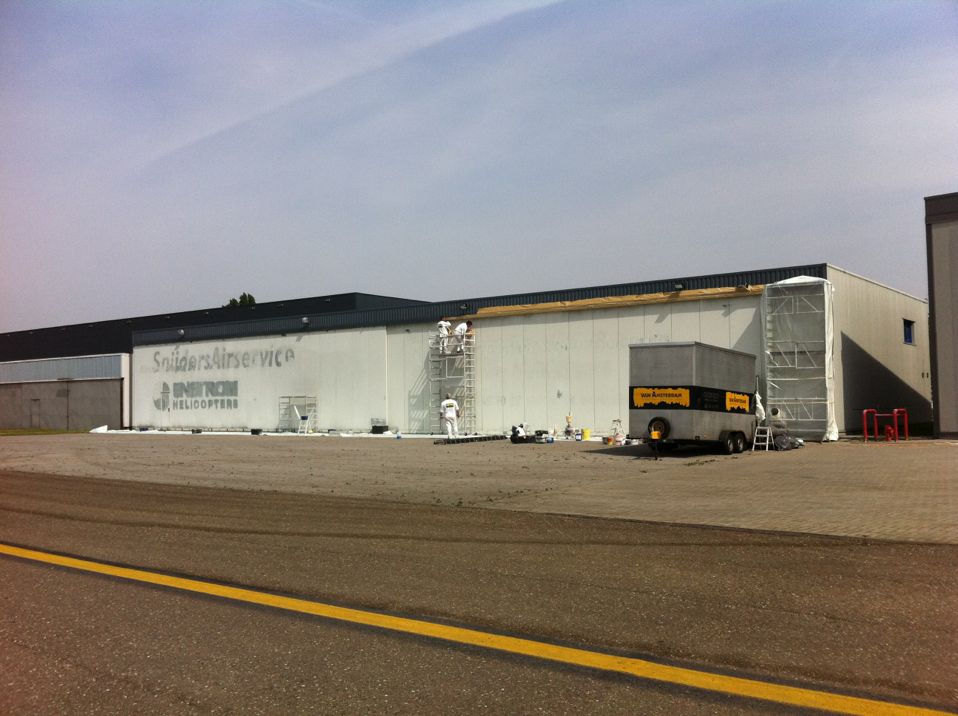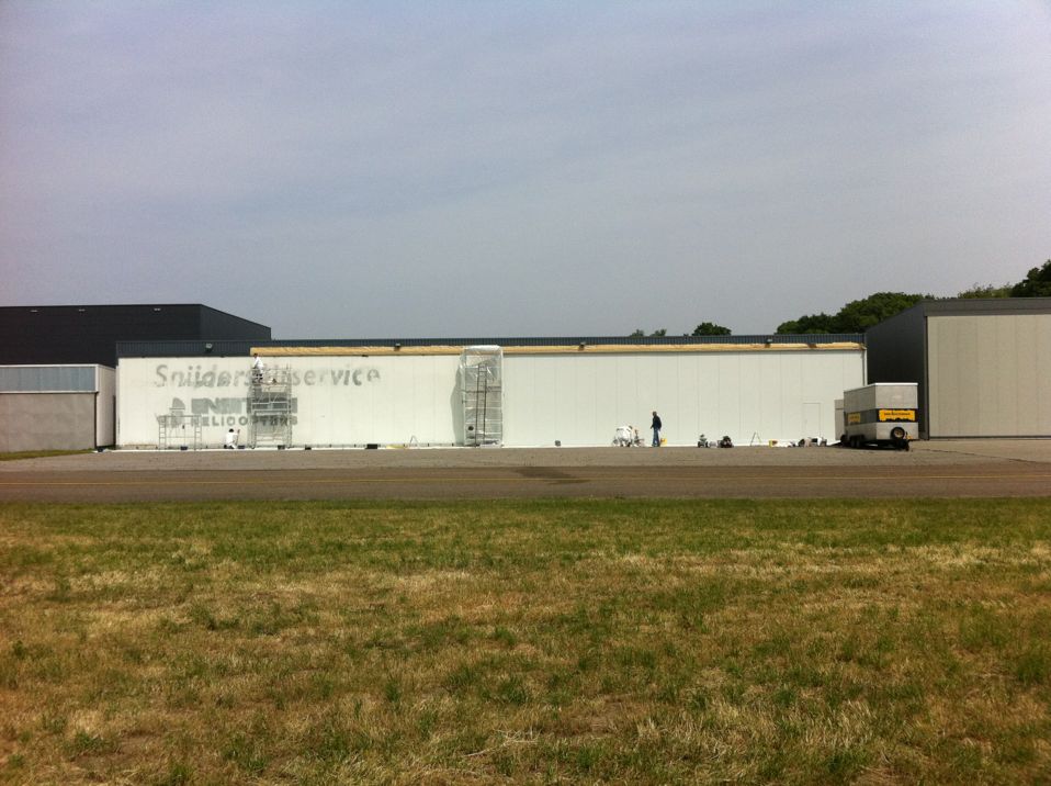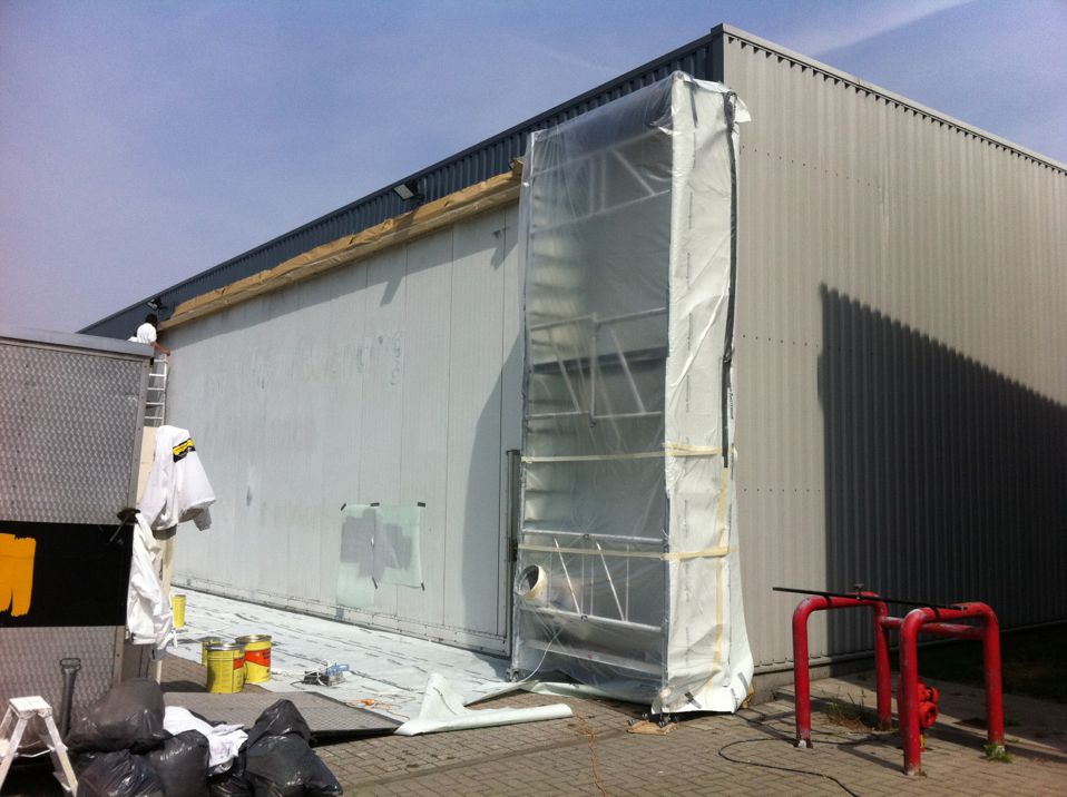 In Belgie werden wij gevraagd door een verzamelaar van historische vliegtuigen om de zojuist aangeschafte prive hangar te spuiten. Grootste probleem wat zich hier kon voordoen was verfnevel op onbetaalbare vliegtuigen.