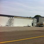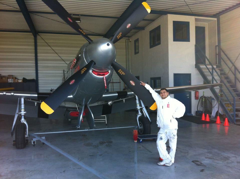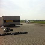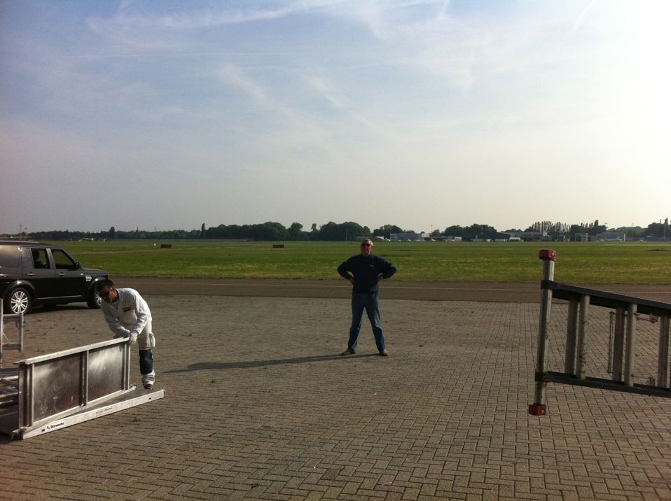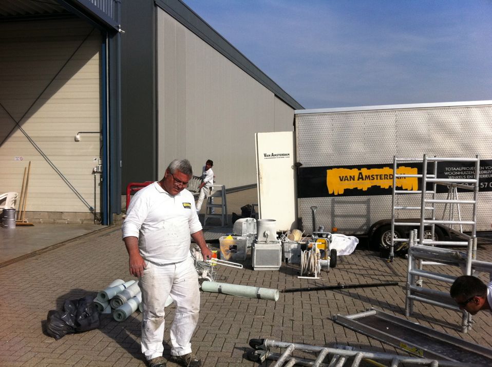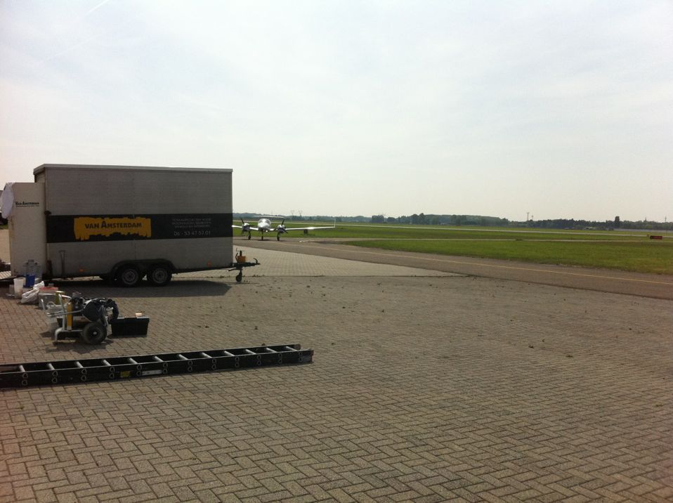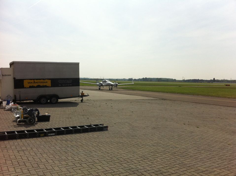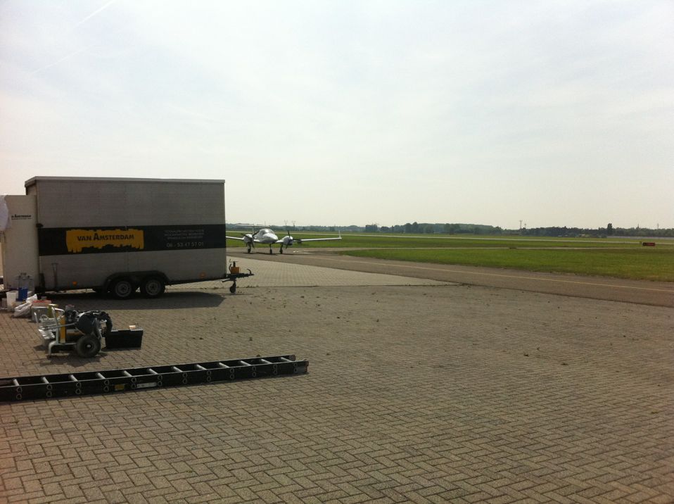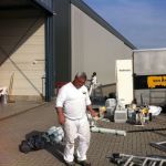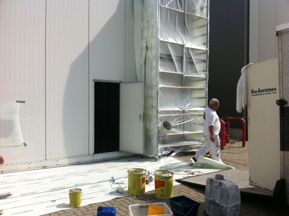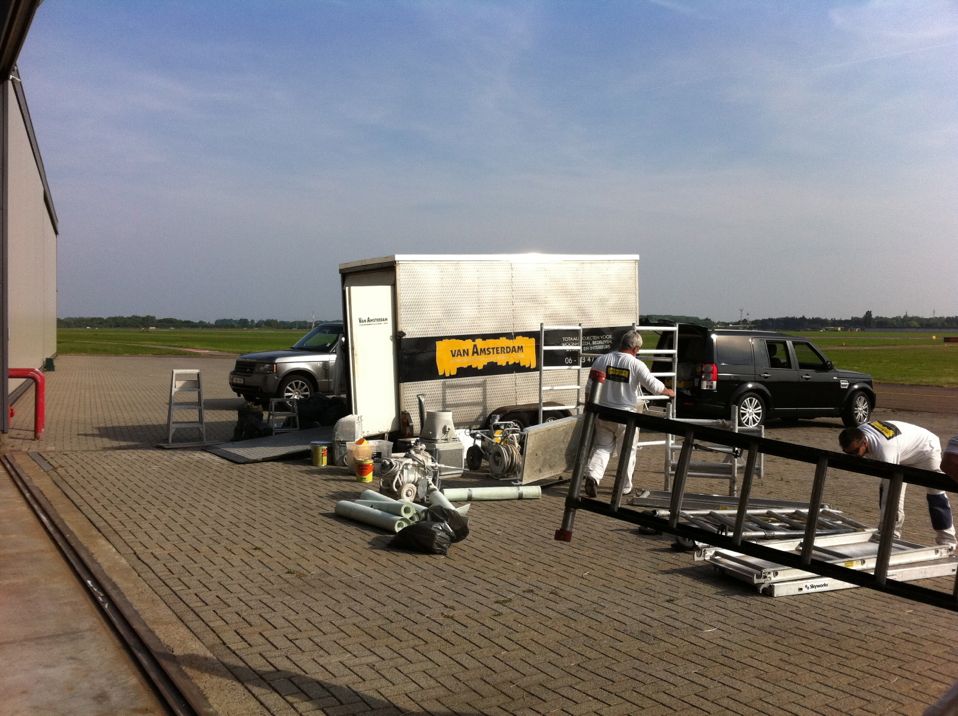 In Belgie werden wij gevraagd door een verzamelaar van historische vliegtuigen om de zojuist aangeschafte prive hangar te spuiten. Grootste probleem wat zich hier kon voordoen was verfnevel op onbetaalbare vliegtuigen.